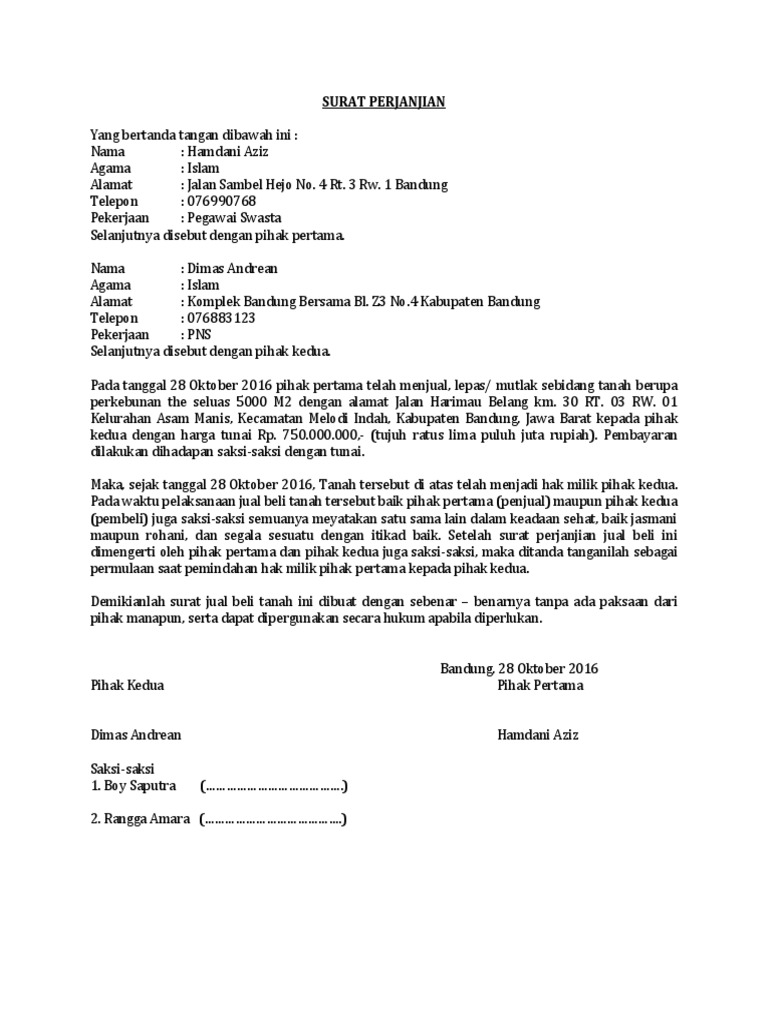 Termasuk untuk menanda tangani surat perjanjian jual beli tanah tersebut. Pada artikel Contoh Surat Perjanjian Jual Beli Tanah Terbaru kali ini kita akan membahas mengenai topik yang hampir sama. Mengelola dan mengurus tanah kebun karet seluas 450ha yang terletak di Desa Mekarsari Kecamatan.